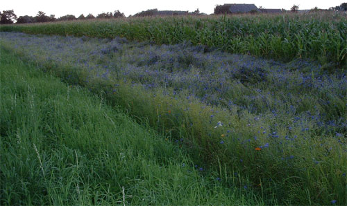 Anläßlich der Euroga wurden im Sommer 2002 einige Teilstücke im Verlauf des alten Nordkanals mit blauen Kornblumen bepflanzt ( Niederstrasse ). |