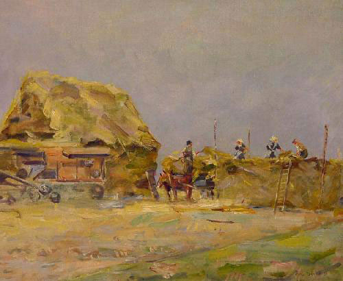 Matthias Derix:: Ernte am Niederrhein – 1935 signiert und datiert – Öl auf Leinwand |