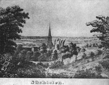 Blick vom Heiligenberg auf Süchteln - Lithographie um 1830 |